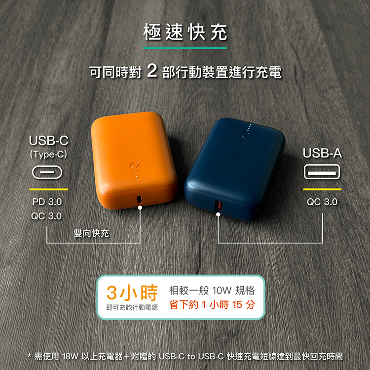 ◎ USB-C 雙向快充,可同時為2部裝置充電